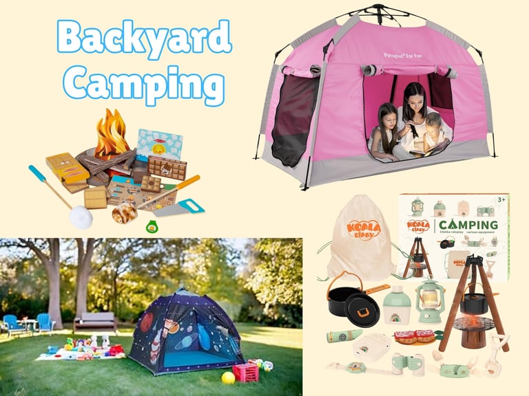 Transform your backyard into a mini campsite. Pitch a tent, bring out sleeping bags, and enjoy stargazing at night. This outdoor adventure can provide a unique camping experience right at home, fostering a love for the outdoors. Here is an easy set up tent made just for kids! Amazon has a great pretend play camping kit. Make smore's for a tasty treat, or use the pretend s'more playset from Melissa and Doug