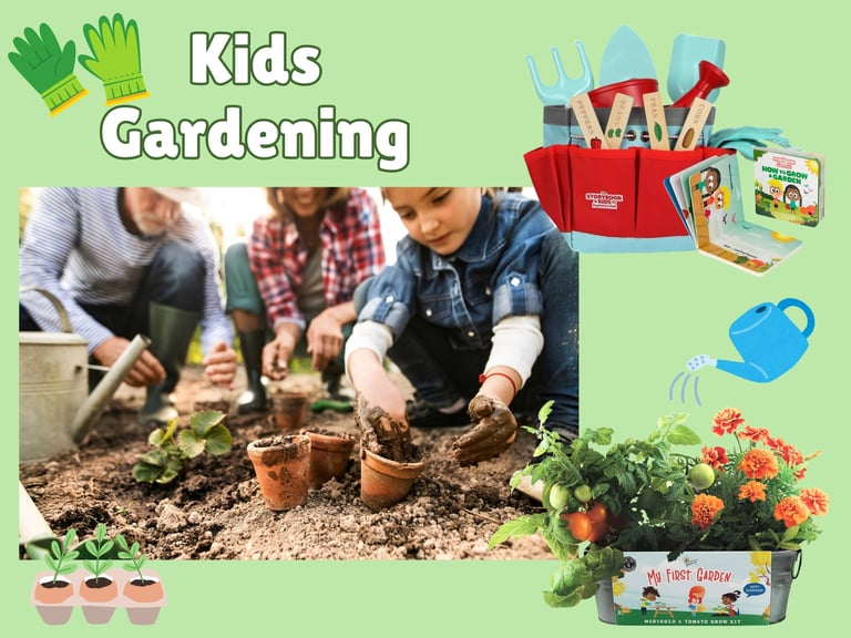 Gardening can be a delightful and educational experience for children. Involve them in planting seeds, watering plants, and learning about different flowers and vegetables. This hands-on experience not only fosters responsibility but also instills an appreciation for nature. We love this kids gardening set that comes with a book, and this "My First Garden" growing kit.