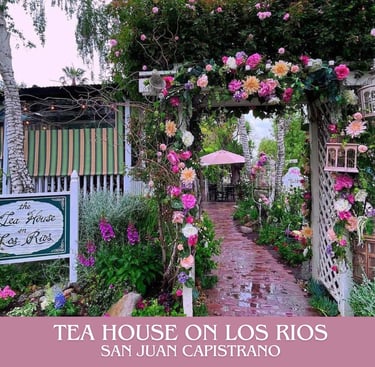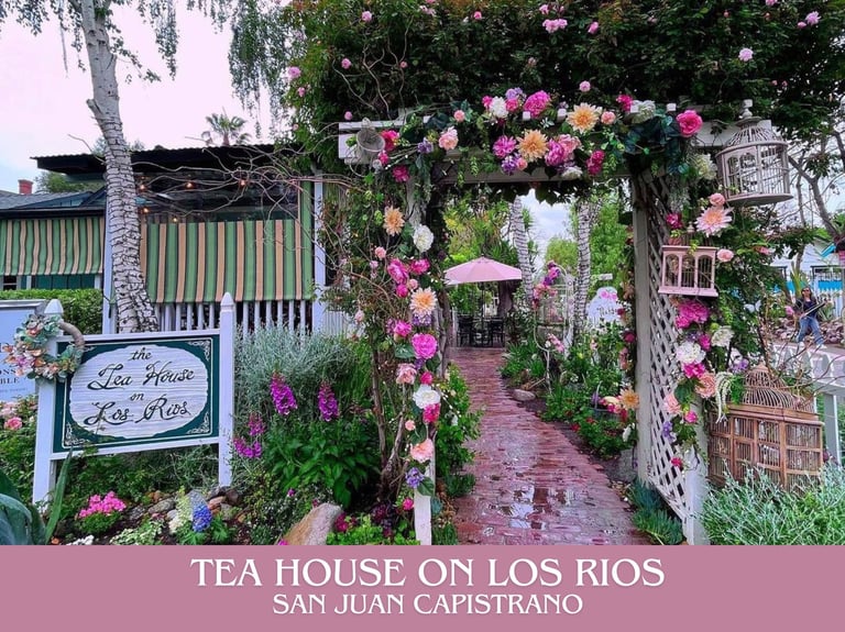 Tea House Los Rios (San Juan Capistrano)-a hidden gem offering a whimsical tea experience. Nestled among lush greenery, this venue feels like stepping into a storybook. Their tea menu includes unique blends along with traditional favorites, and the garden setting makes for a truly magical tea party backdrop.