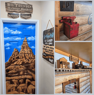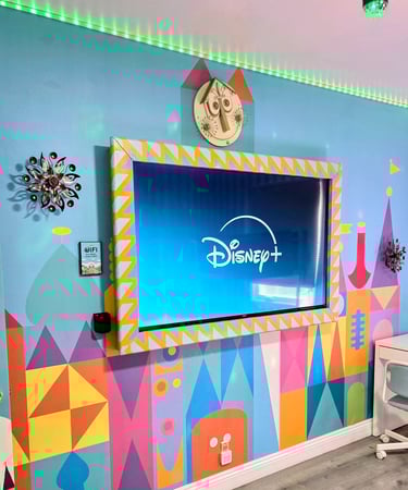 Upon entering, you and your family will be greeted by beautifully themed bedrooms that bring a taste of Disney magic right into your stay. Each room features delightful décor inspired by Disney rides, transporting even the adults back to their childhood favorites. The kids will be especially excited to have their own Small World themed bedroom with bunk beds, whimsical music, and fun lights for their own private dance party!