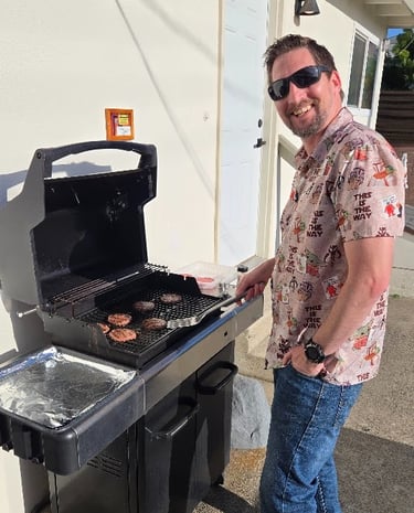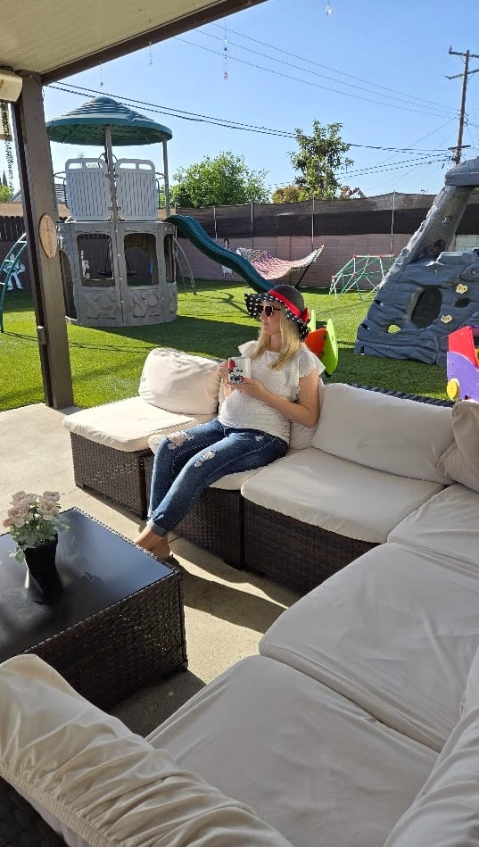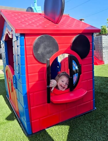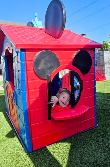 But that's only the beginning! This Airbnb is equipped with a fully stocked kitchen, making family meals a breeze after a long day of exploring the parks. We used the Mickey waffle maker to make a special breakfast for the littles! For dinner, we used the outdoor BBQ and had a delicious meal of hamburgers and corn, which we ate outside on the patio with the beautiful sunny weather.