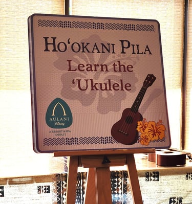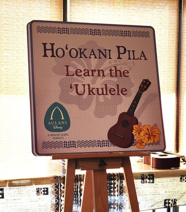Do not miss the free Ukulele lessons! This was such a cool experience. Other free activities include hula dancing, live music, fireside stories, and character meet and greets all around the resort! They used to have lei making, but did not this past trip, they may change things up so always ask when you get there.