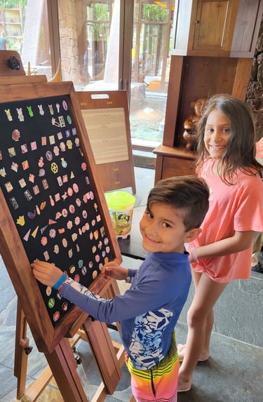 Buying Pins- You can purchase pins at any of the Disney Resorts, they have fun blind bags now with different collections. We even bought some unique ones when we went to Aulani Resort in Hawaii.