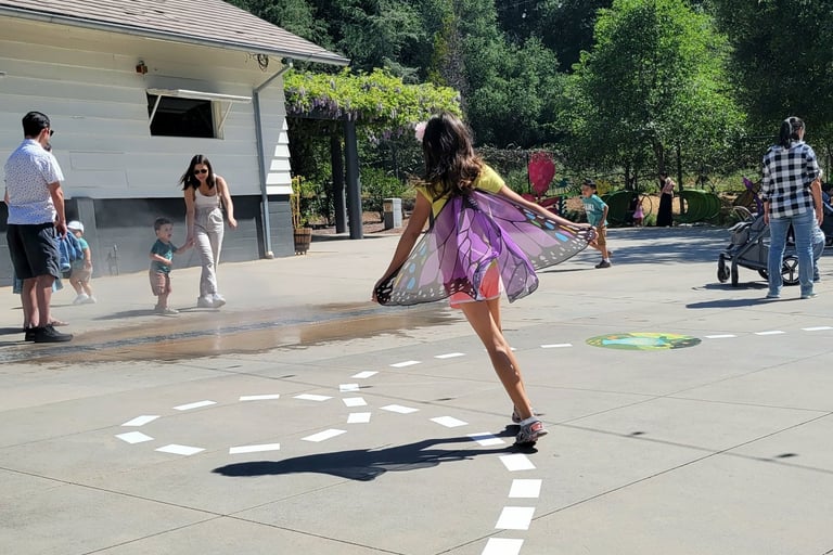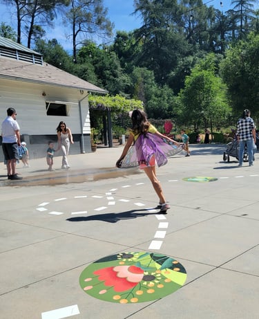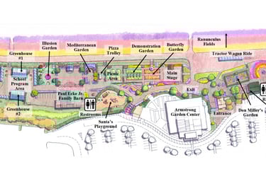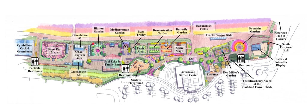 Kids areas, including sweet pea maze, Santa's Playground, butterfly garden, mining for gems, and an illusion garden.